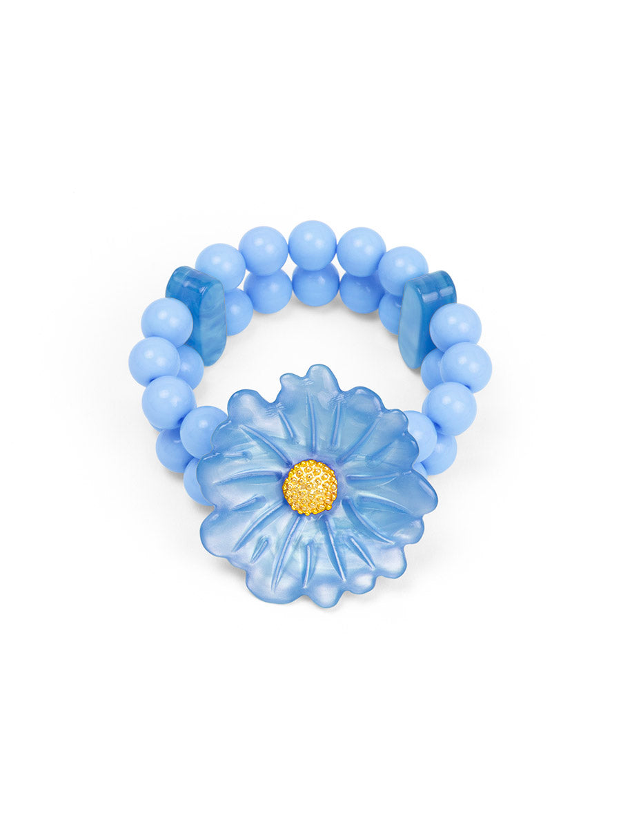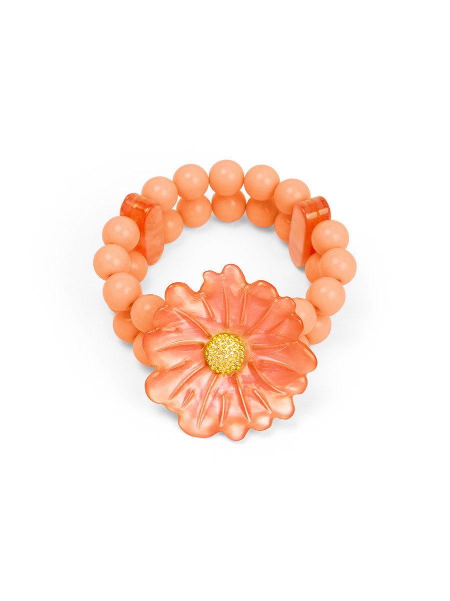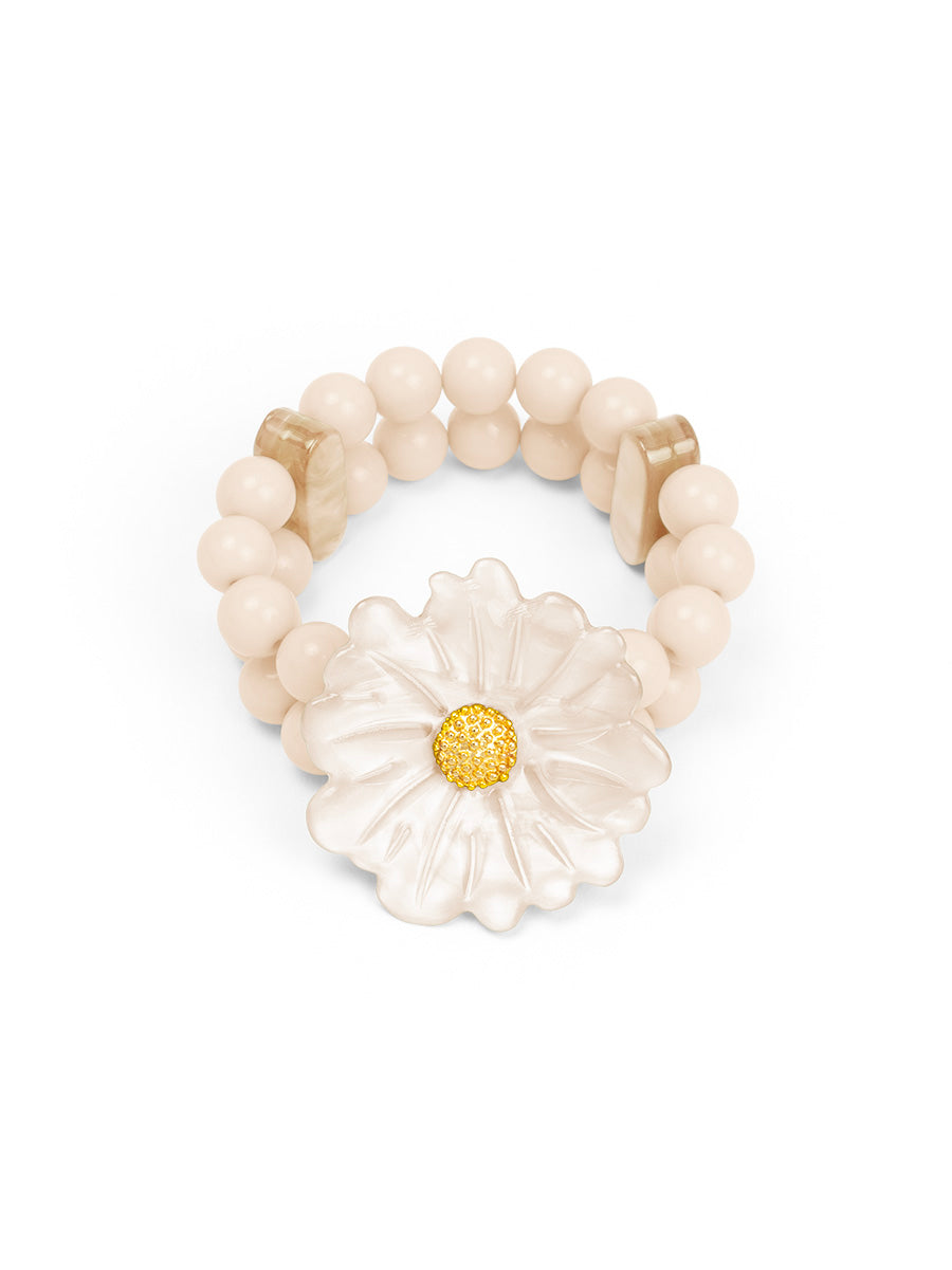 A stretch double band beaded bracelet finished with a sculpted statement daisy.