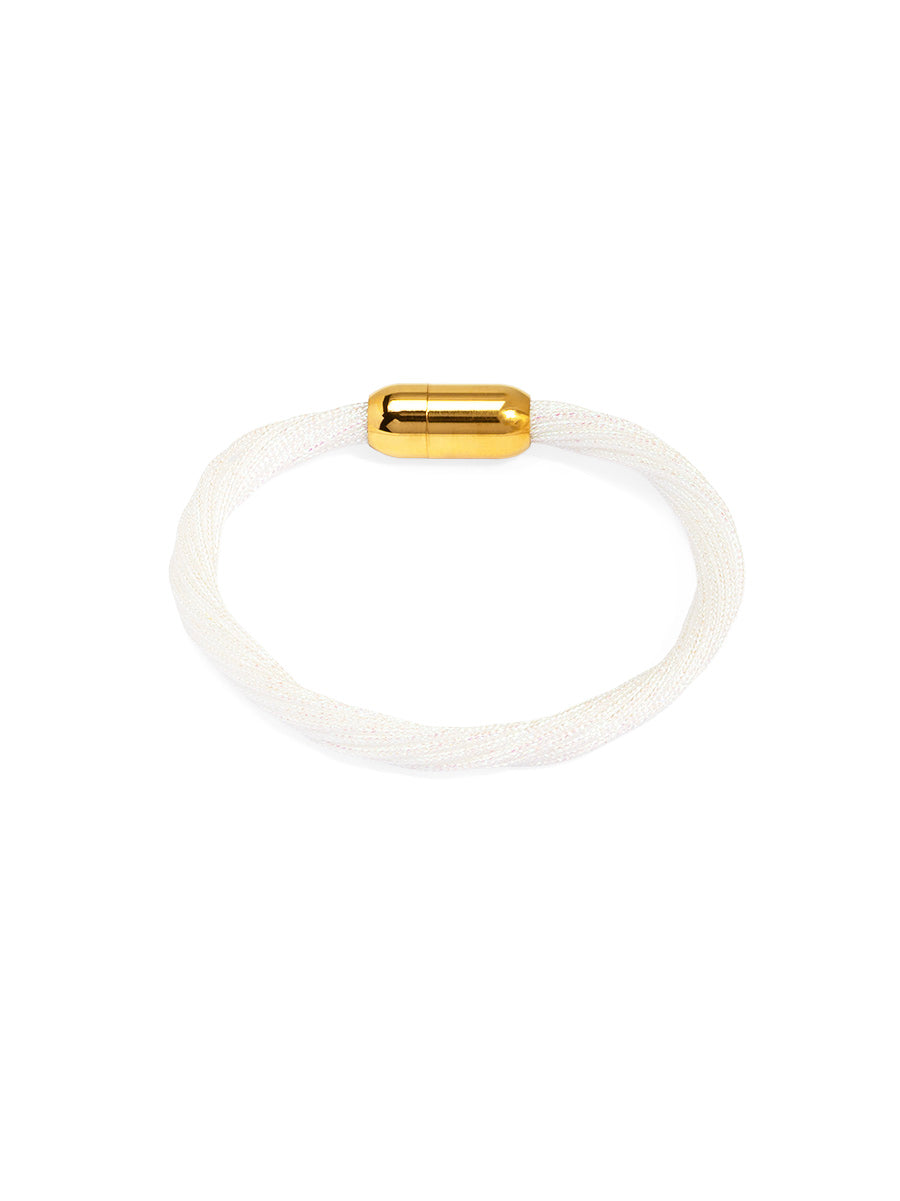 A silk-shine cord bracelet finished with a sleek magnetic barrel clasp.