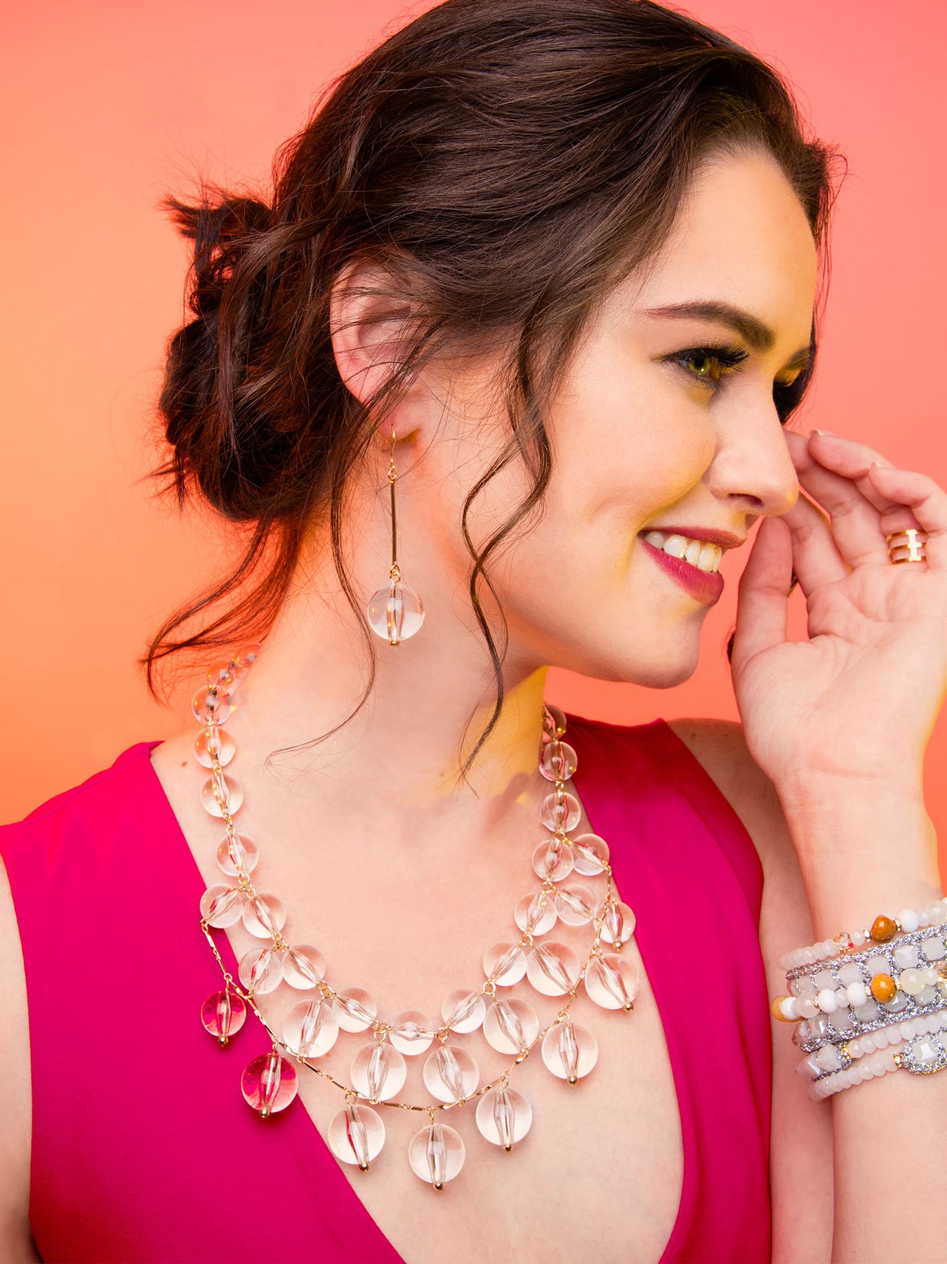 Strikingly unconventional and colorful, this resin bead bib necklace features transparency, clearly making the style effortless.