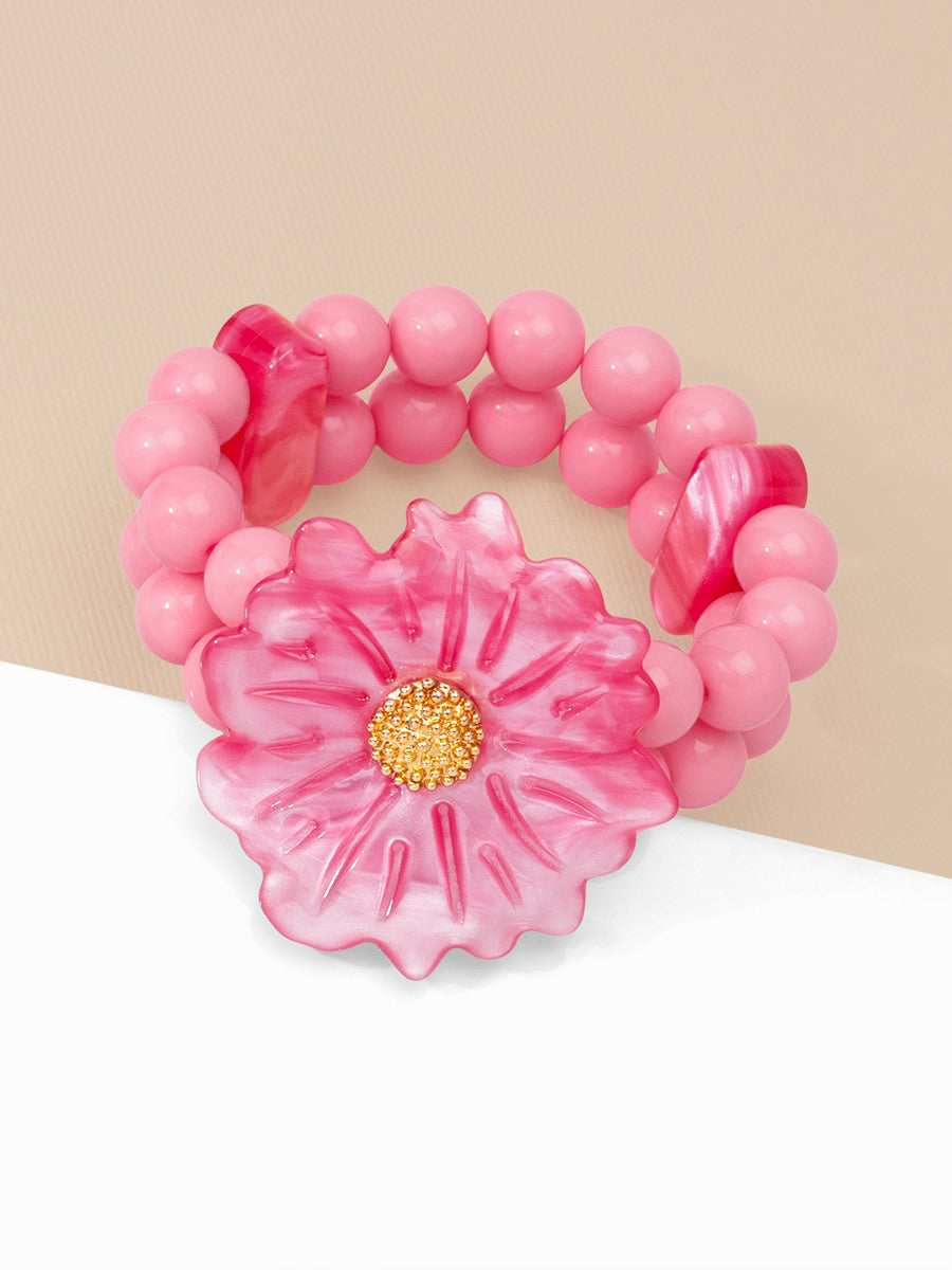 A stretch double band beaded bracelet finished with a sculpted statement daisy.