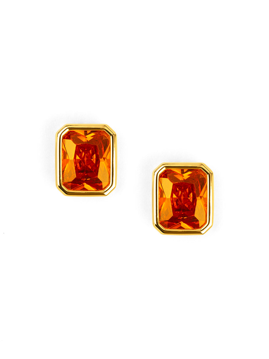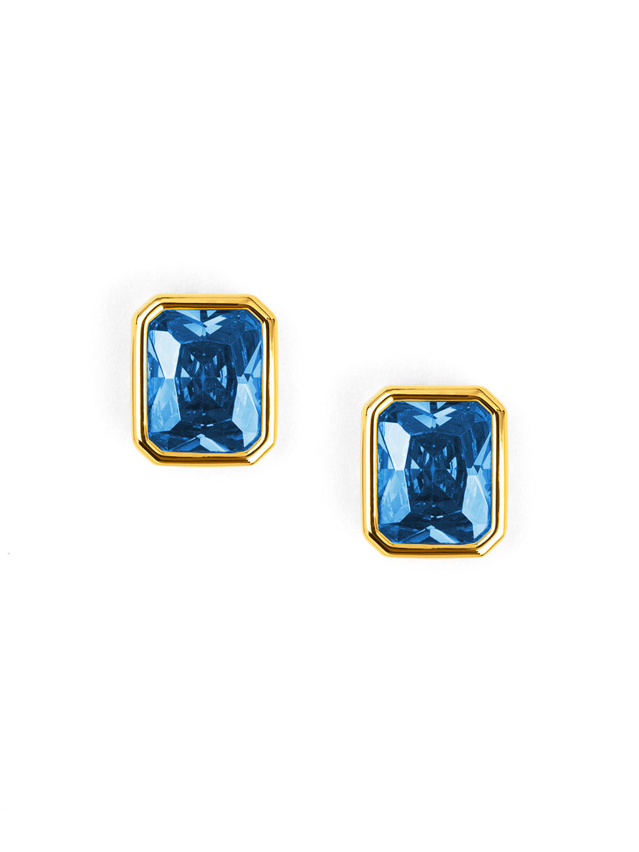 Stud earrings designed with faceted birthstone-inspired stones set in polished gold.
