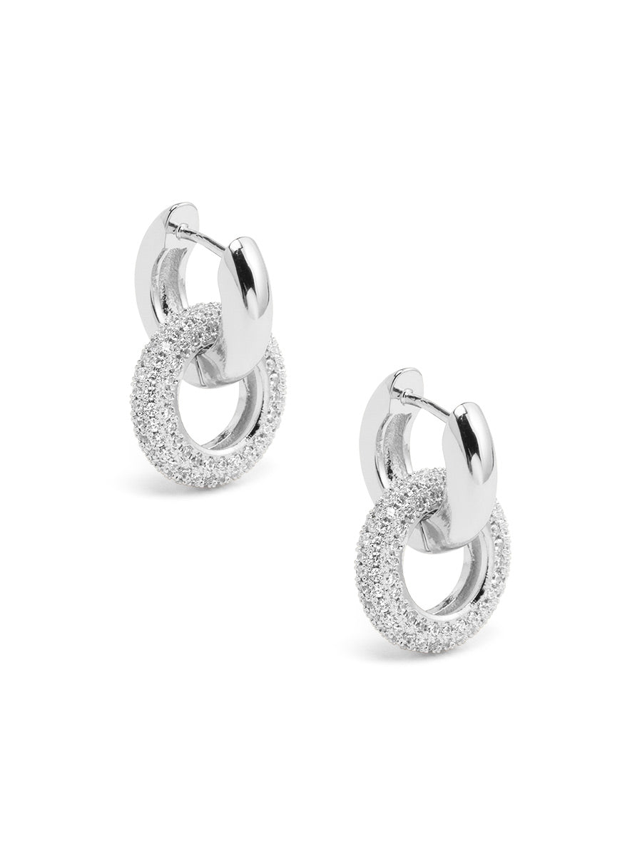 -Drop earring designed with a small pave-set oval link suspended from the top hoop.
