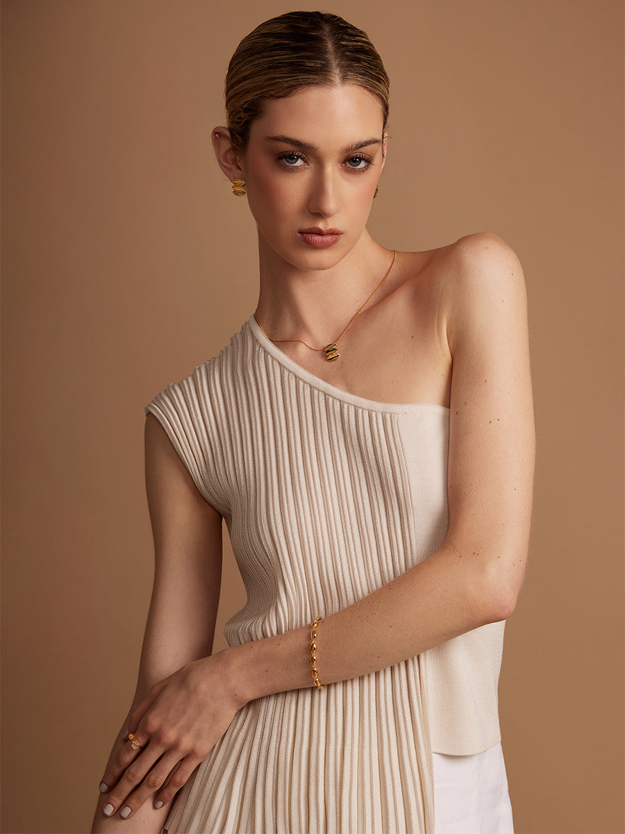Three sculpted forms stack in a subtle ripple, creating a curved silhouette that hugs the ear.