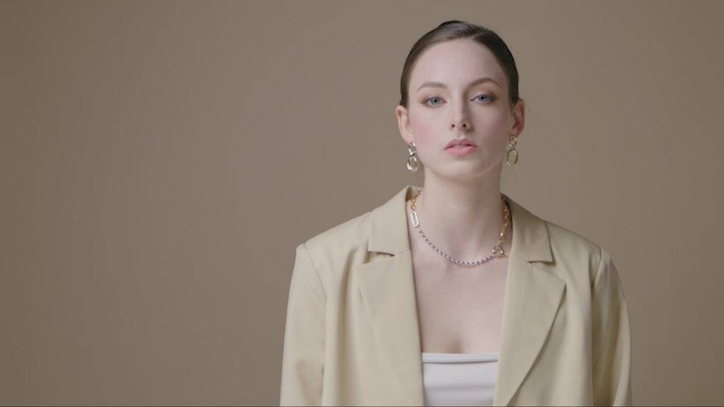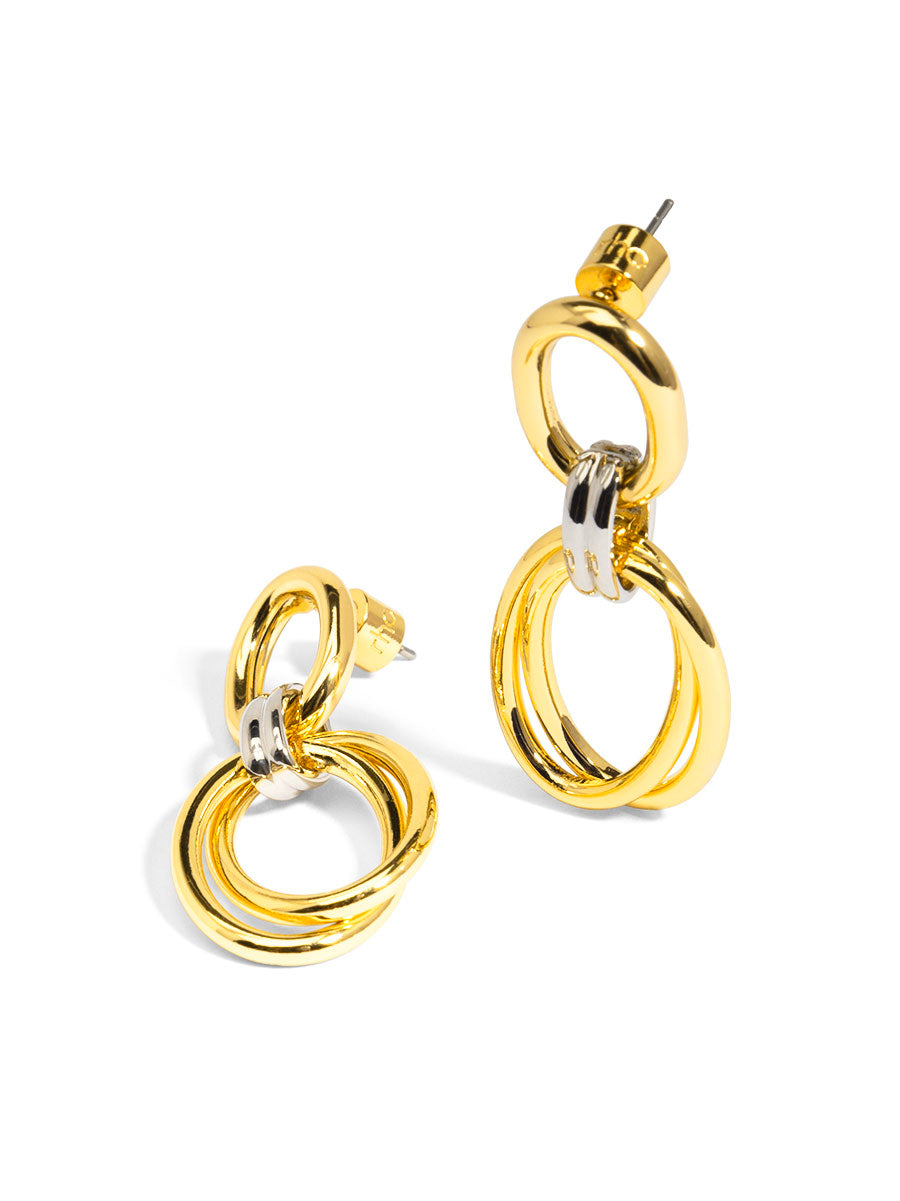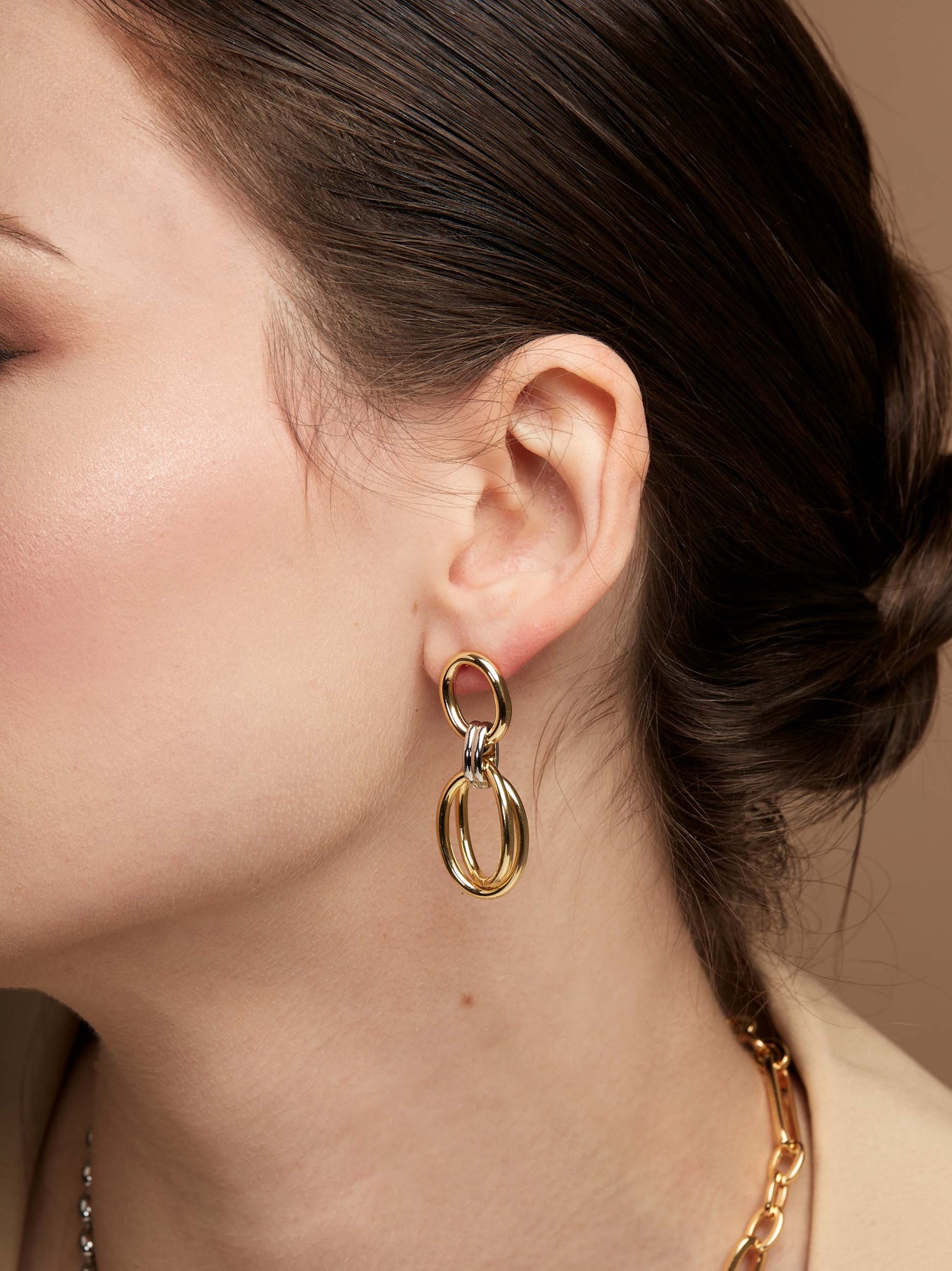 Drop earring featuring a double silver link and an 18K gold-plated double oval link drop.