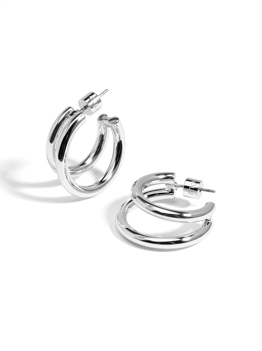 Small 18K gold-plated open hoop earring with two-tone metals.