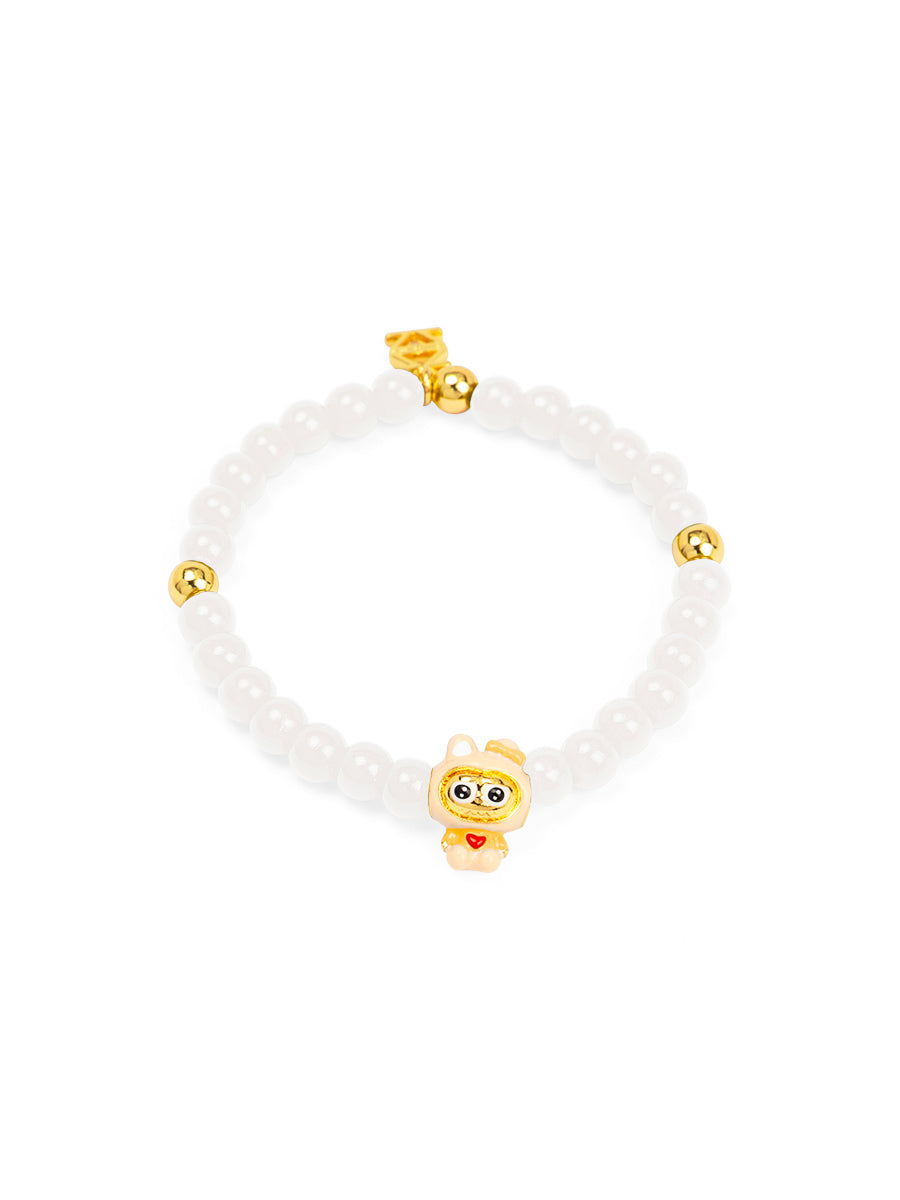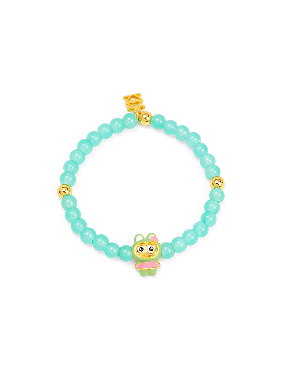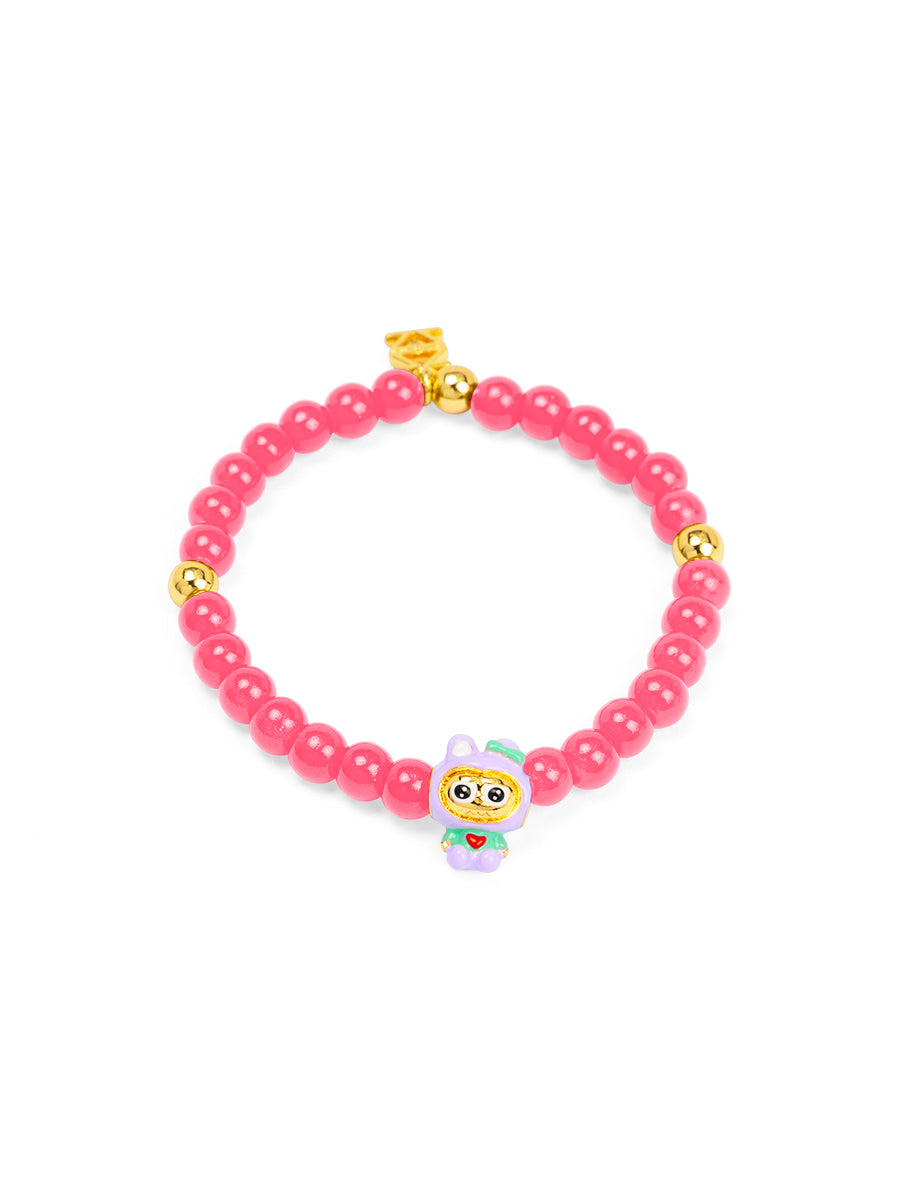 A stretch glassbead bracelet finished with a whimsical character charm and gold-tone accents.