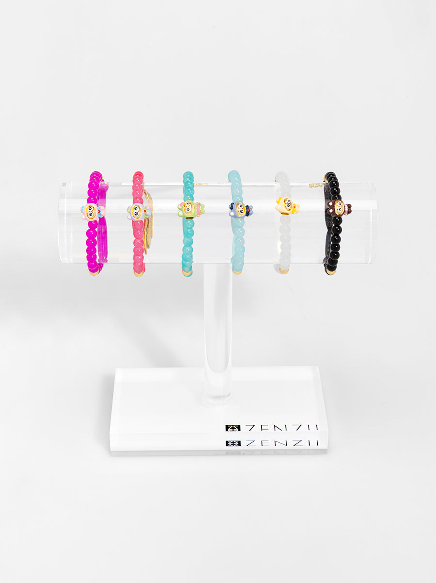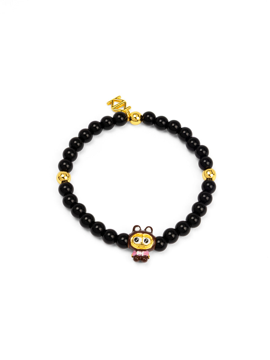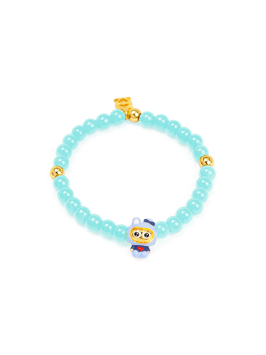 A stretch glassbead bracelet finished with a whimsical character charm and gold-tone accents.