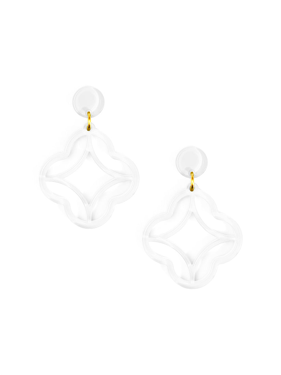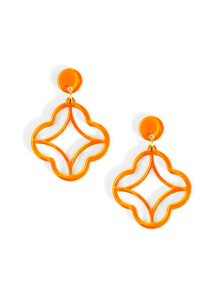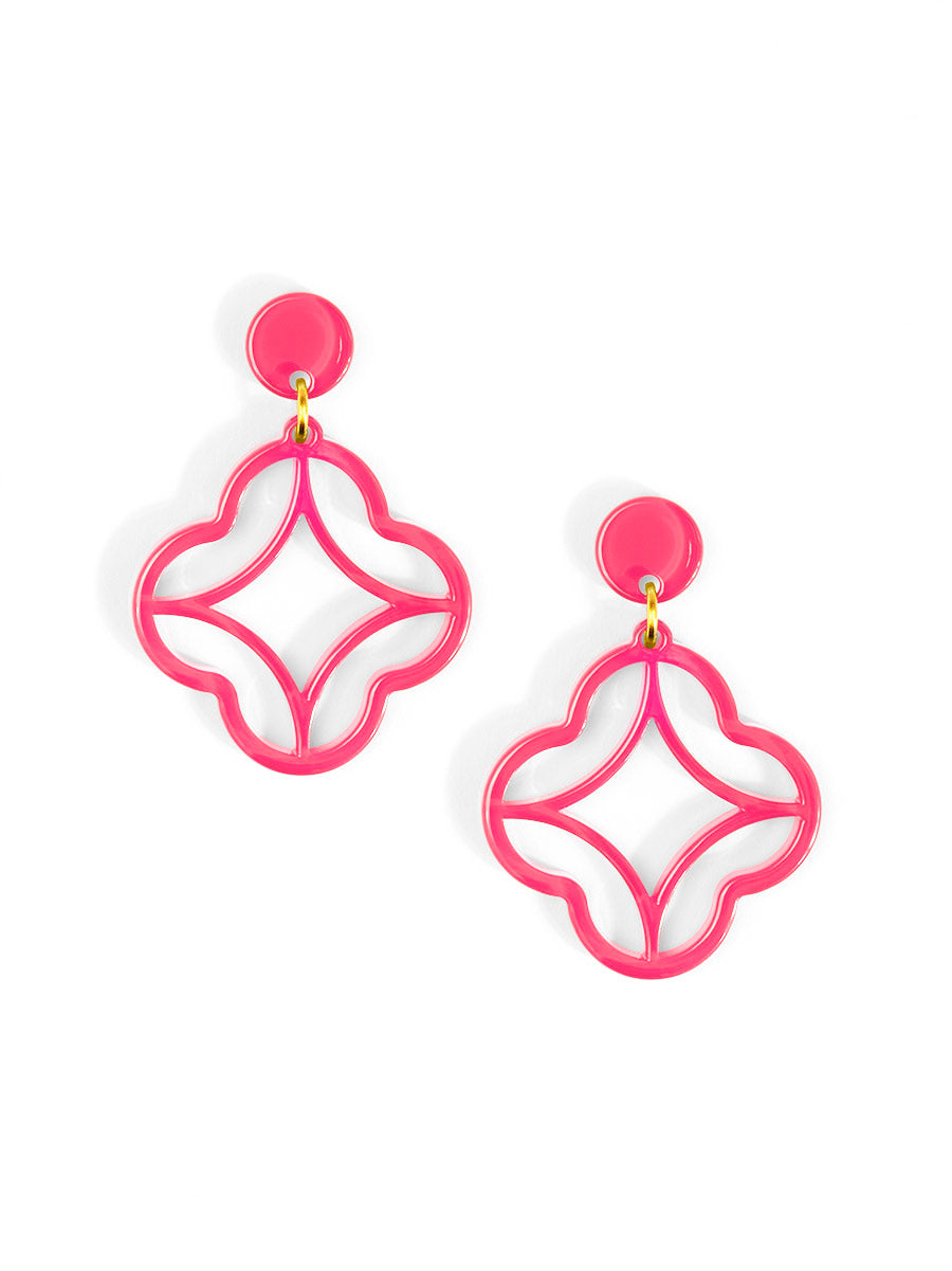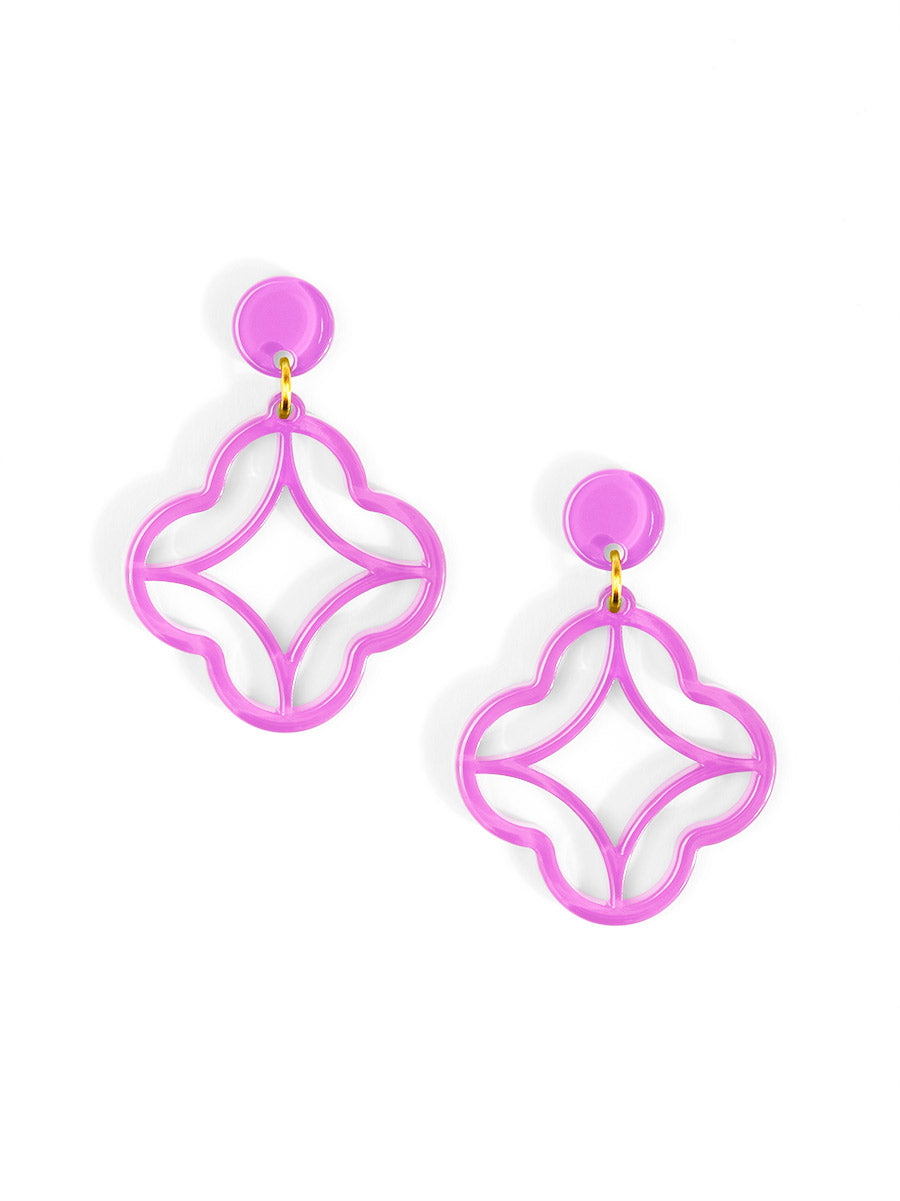 A modern stud-drop design featuring a star-shaped center wrapped in a clean quatrefoil frame. Polished, playful, and perfect for everyday color.