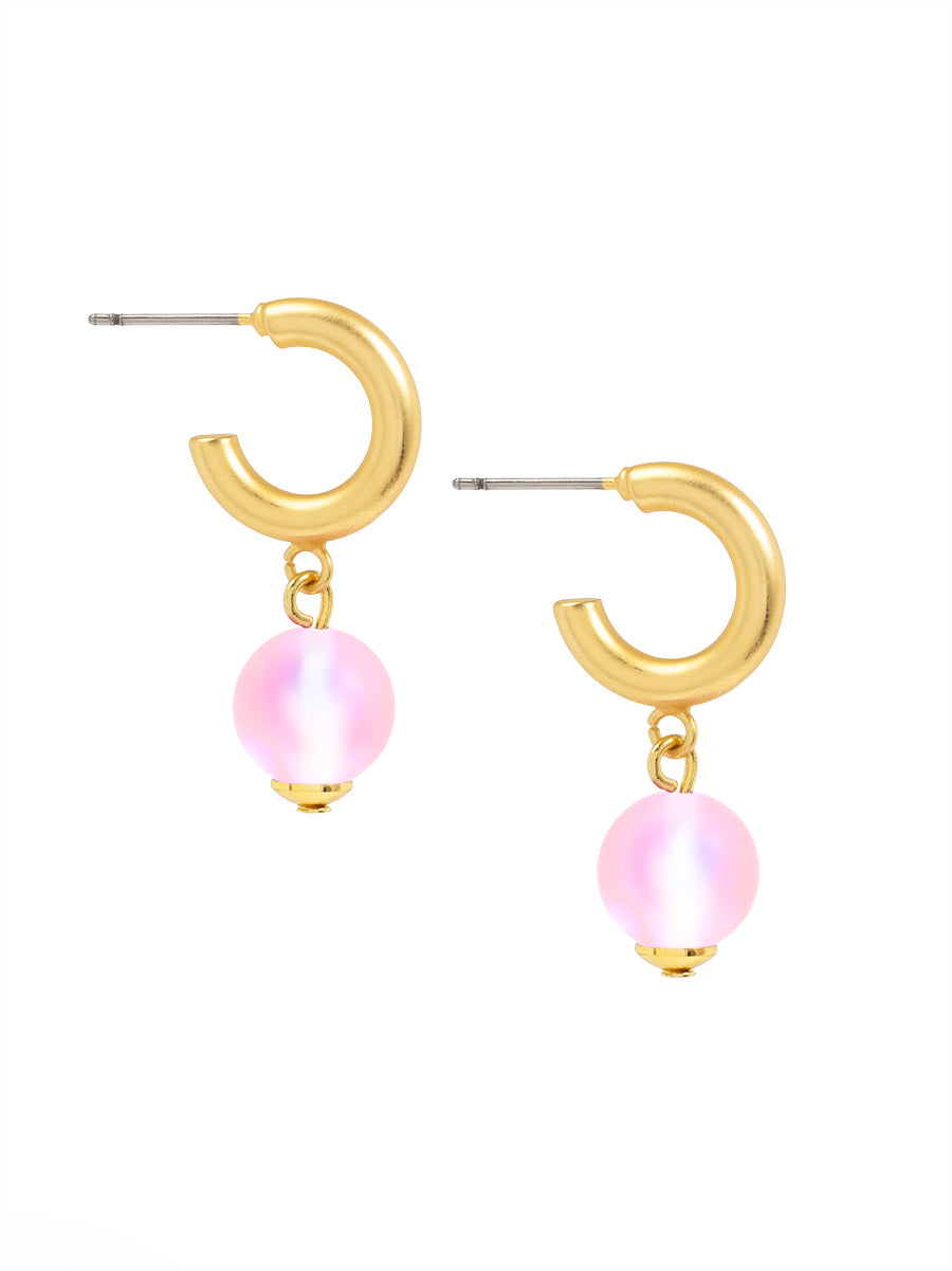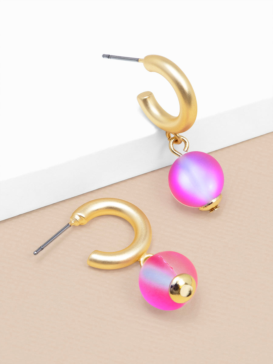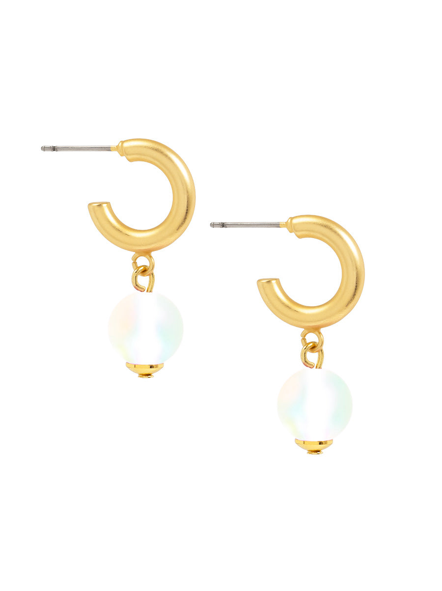 A polished hoop earring finished with a luminous bead drop and gold-tone accents.