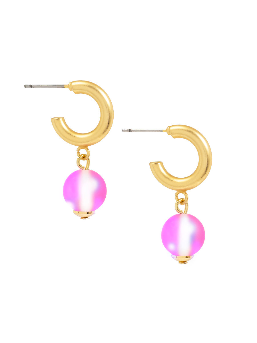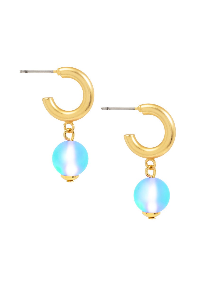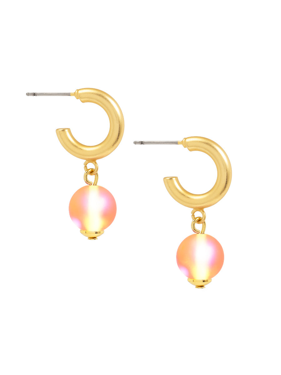A polished hoop earring finished with a luminous bead drop and gold-tone accents.