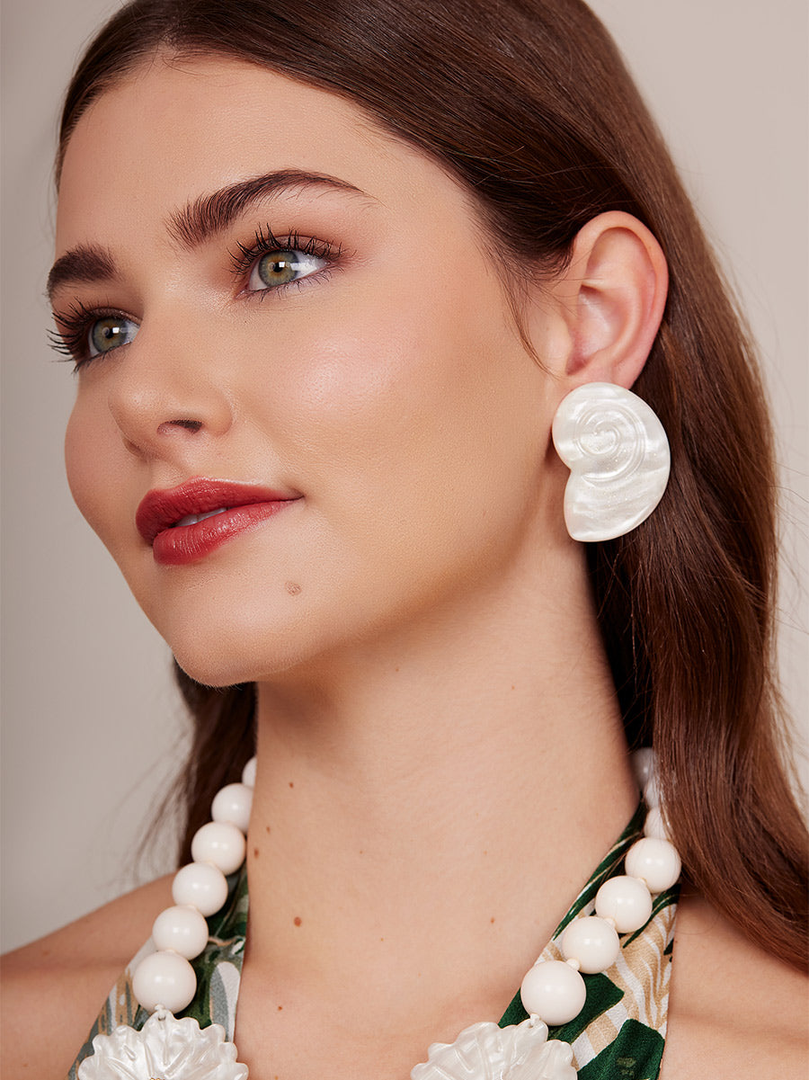 Sculpted sea snail studs with a smooth, marbled look.