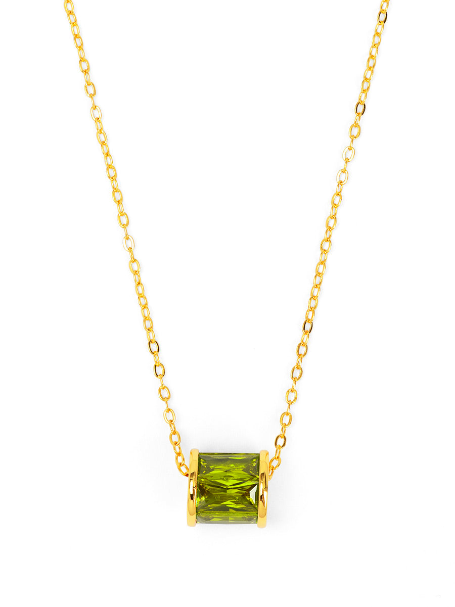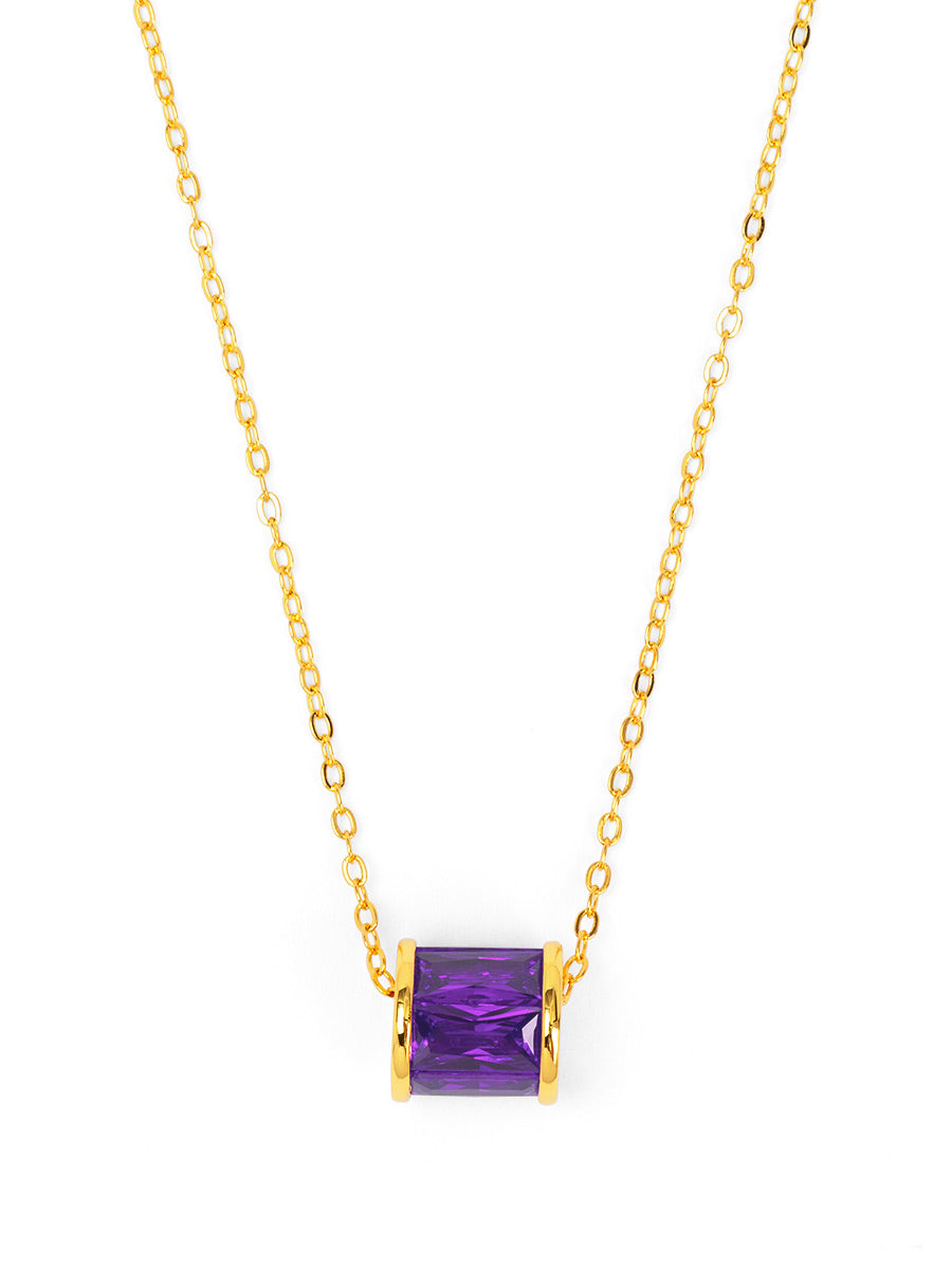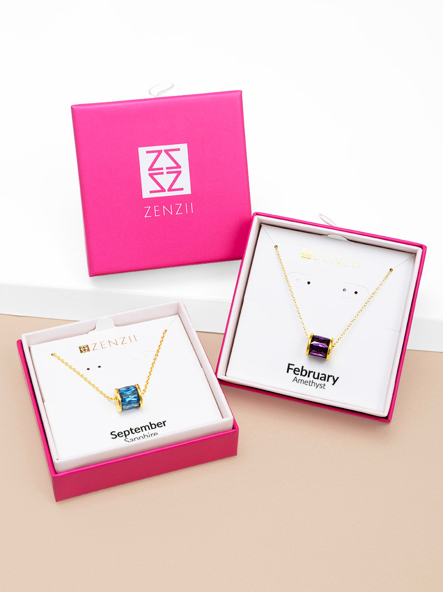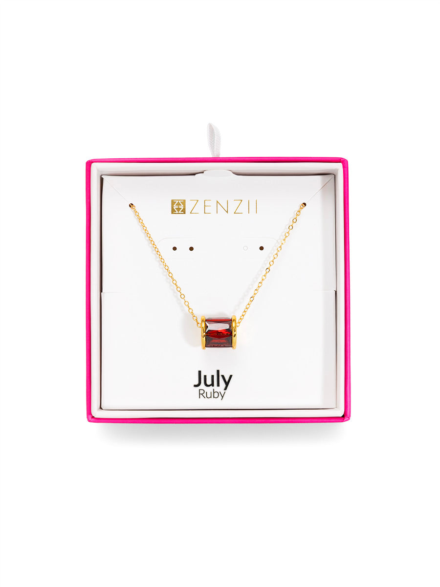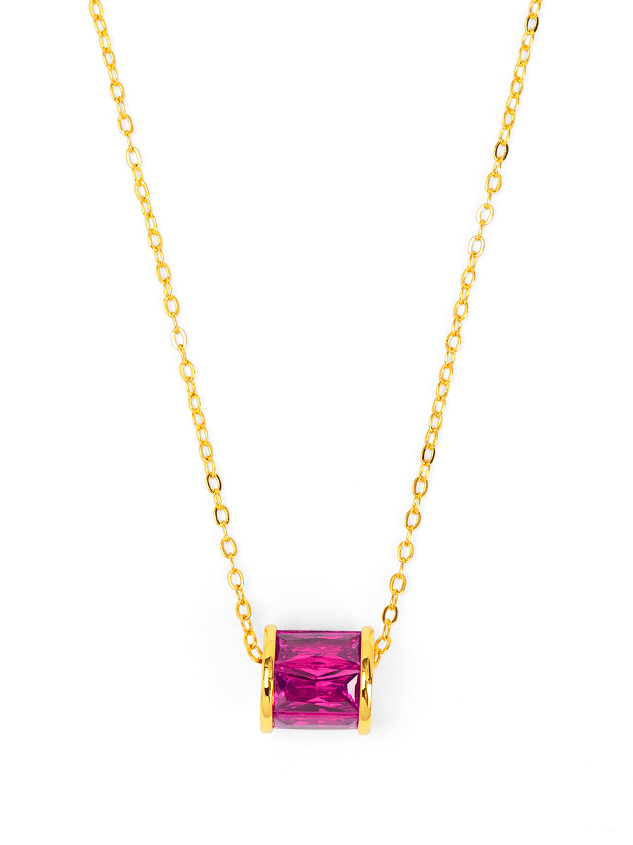 A delicate necklace featuring a faceted birthstone-inspired charm framed in polished gold.