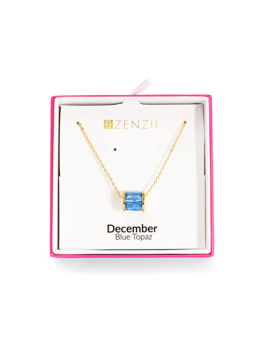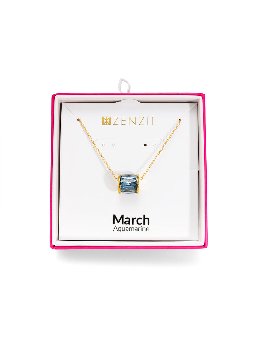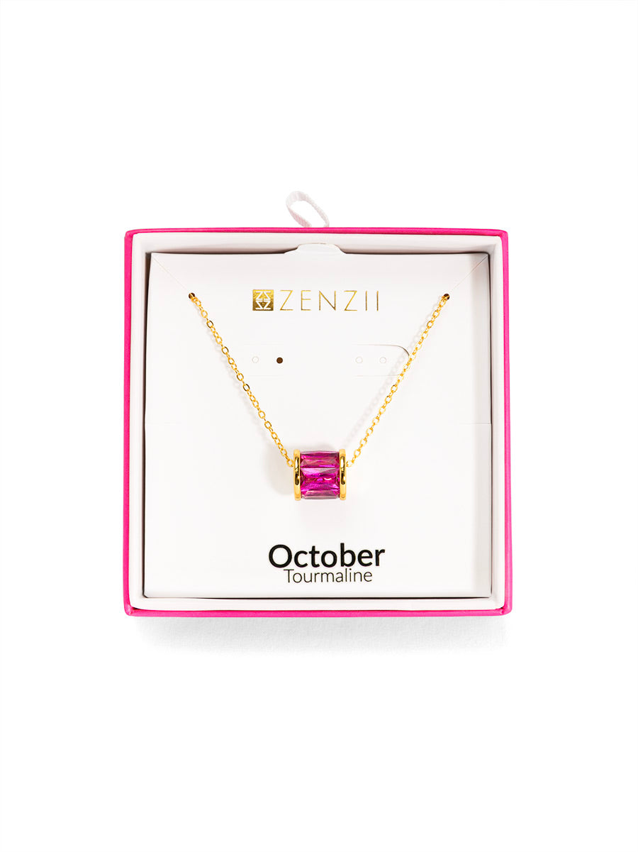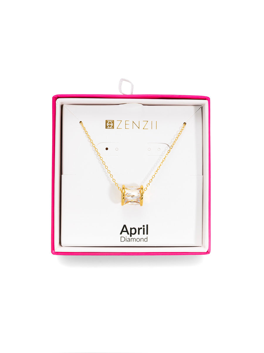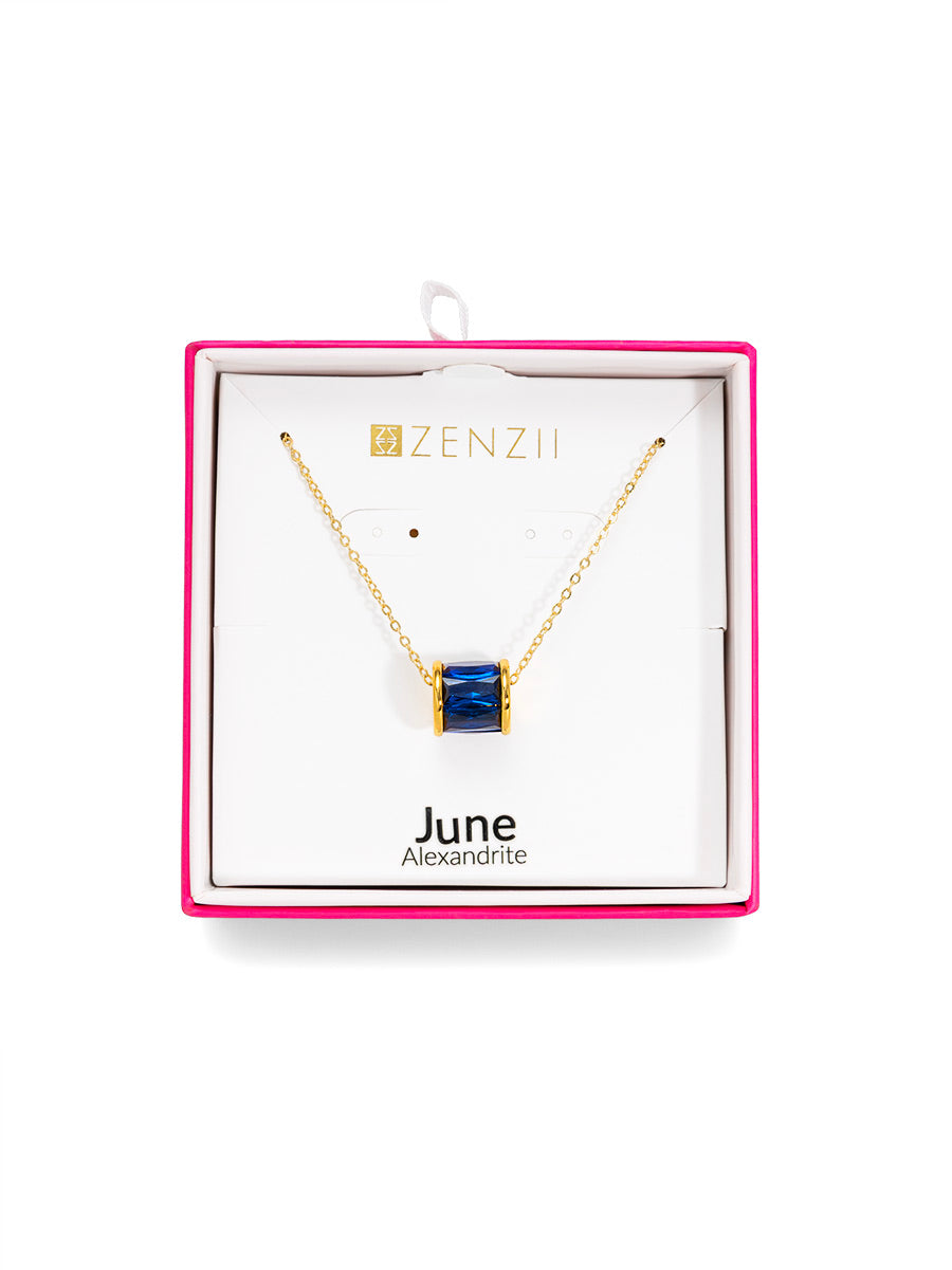 A delicate necklace featuring a faceted birthstone-inspired charm framed in polished gold.