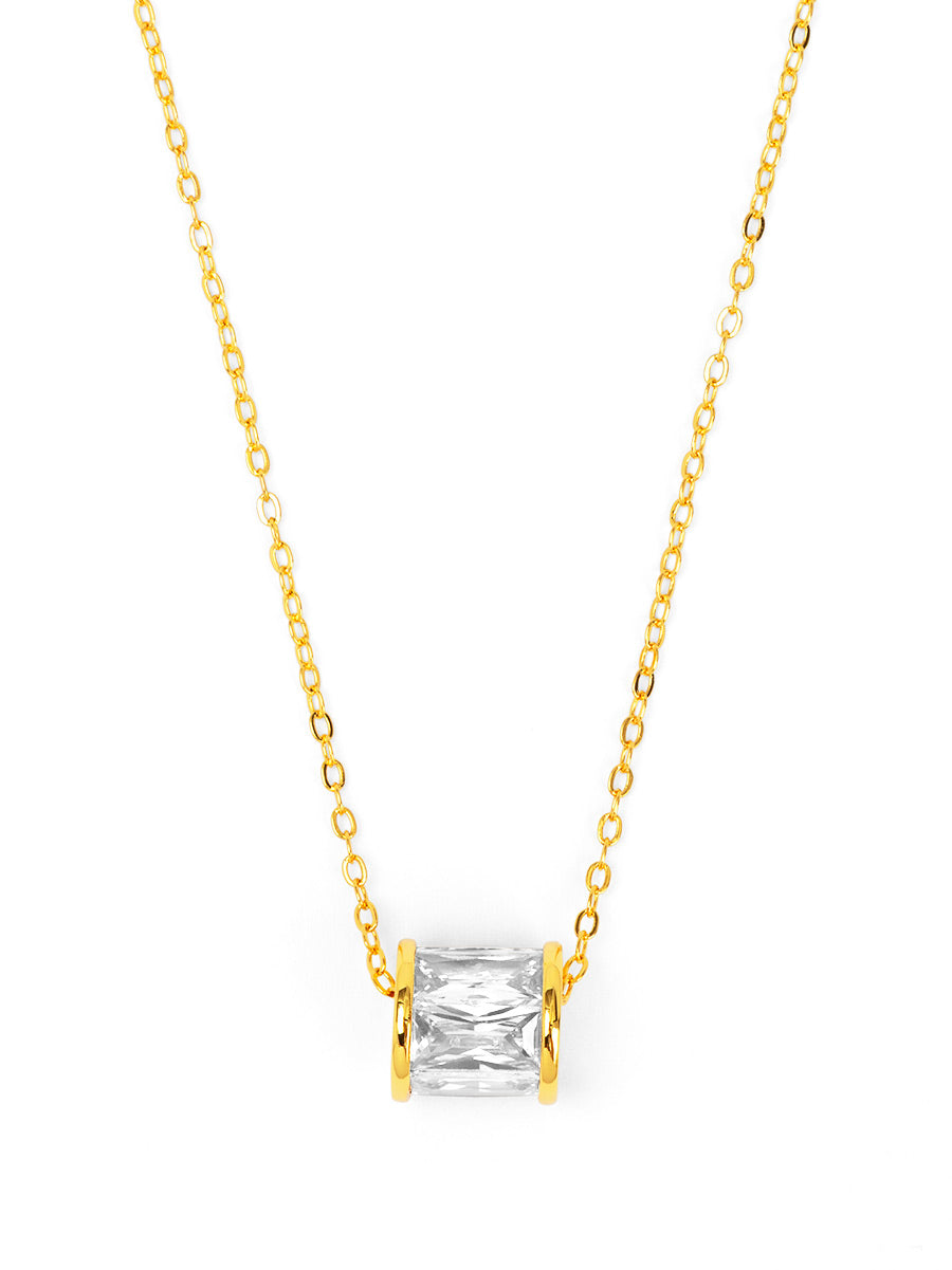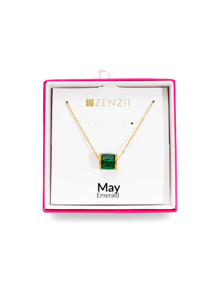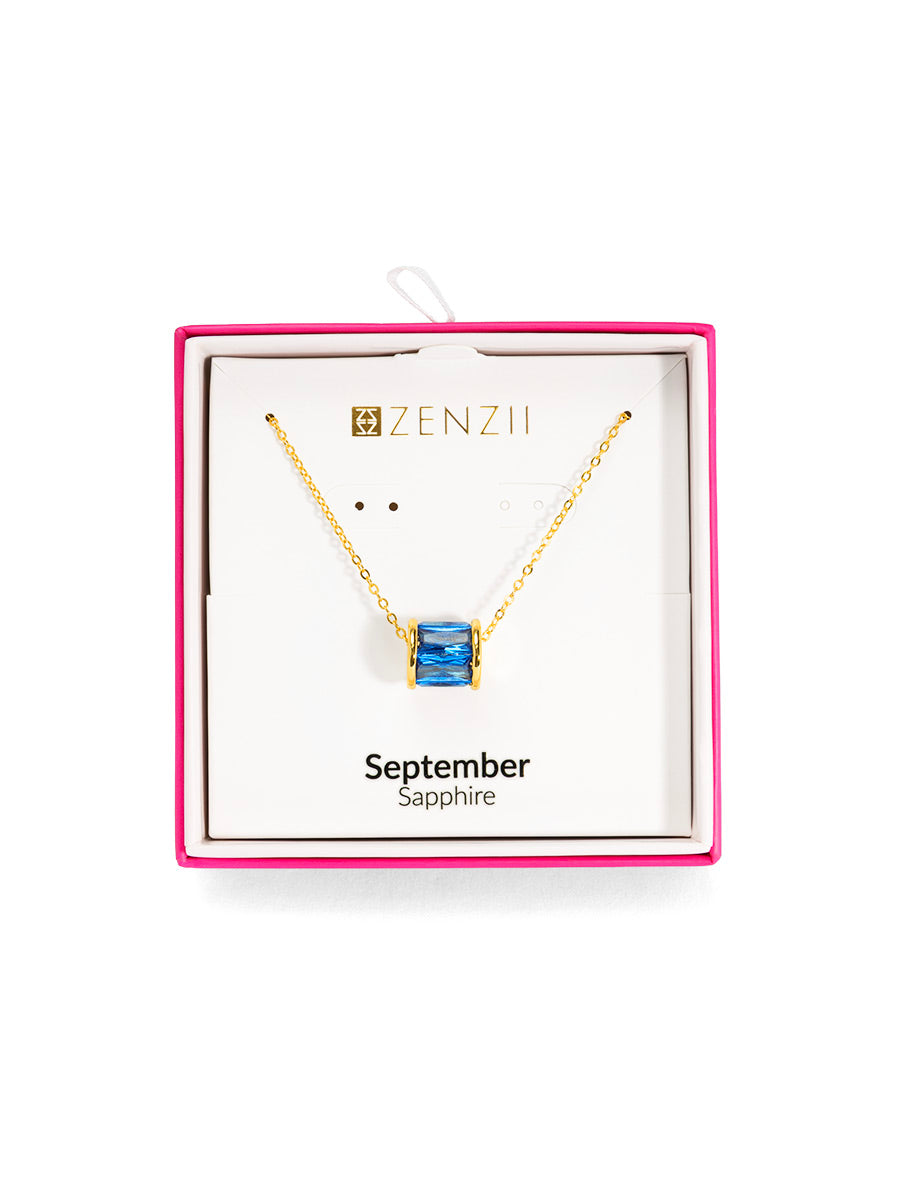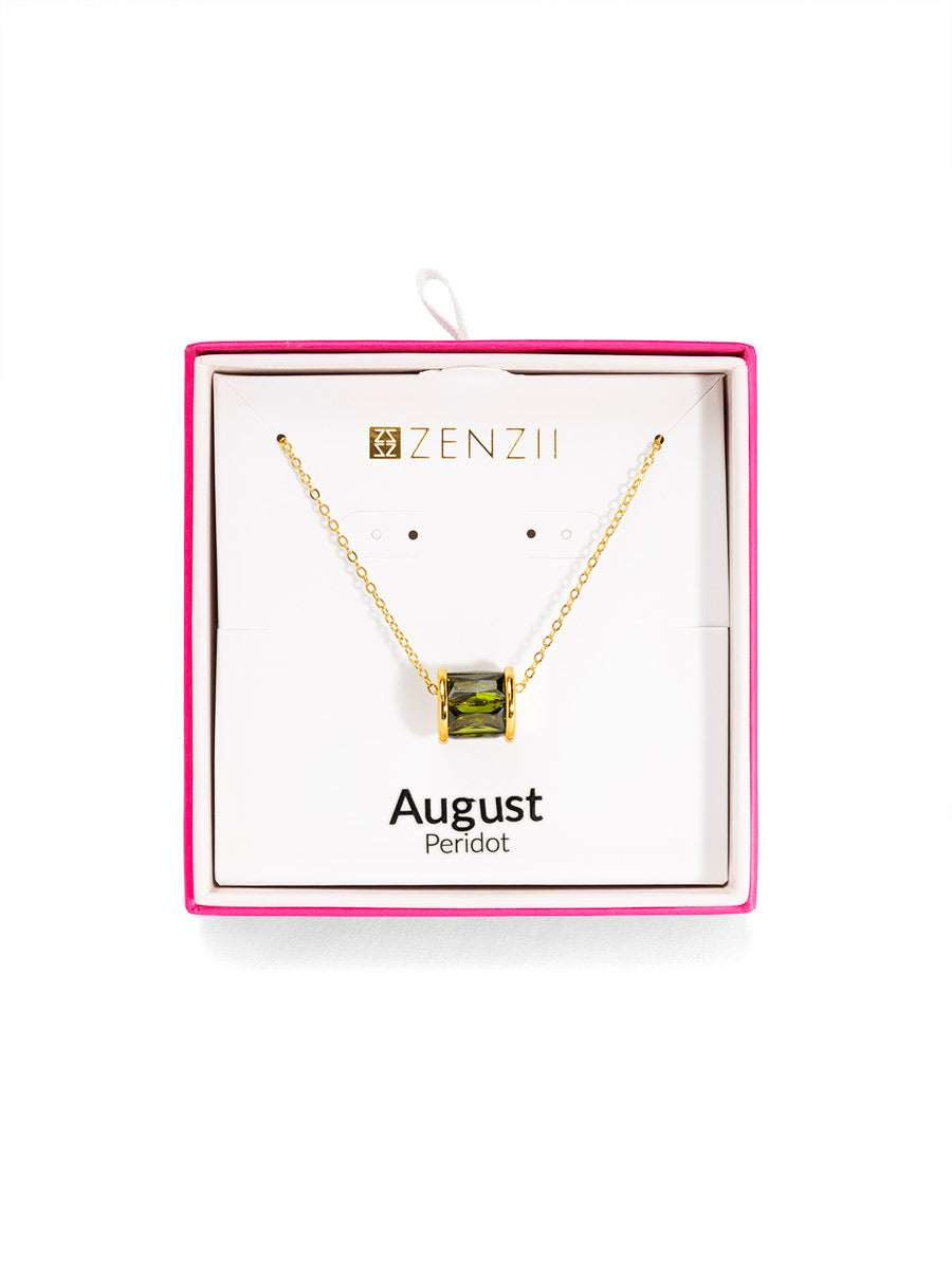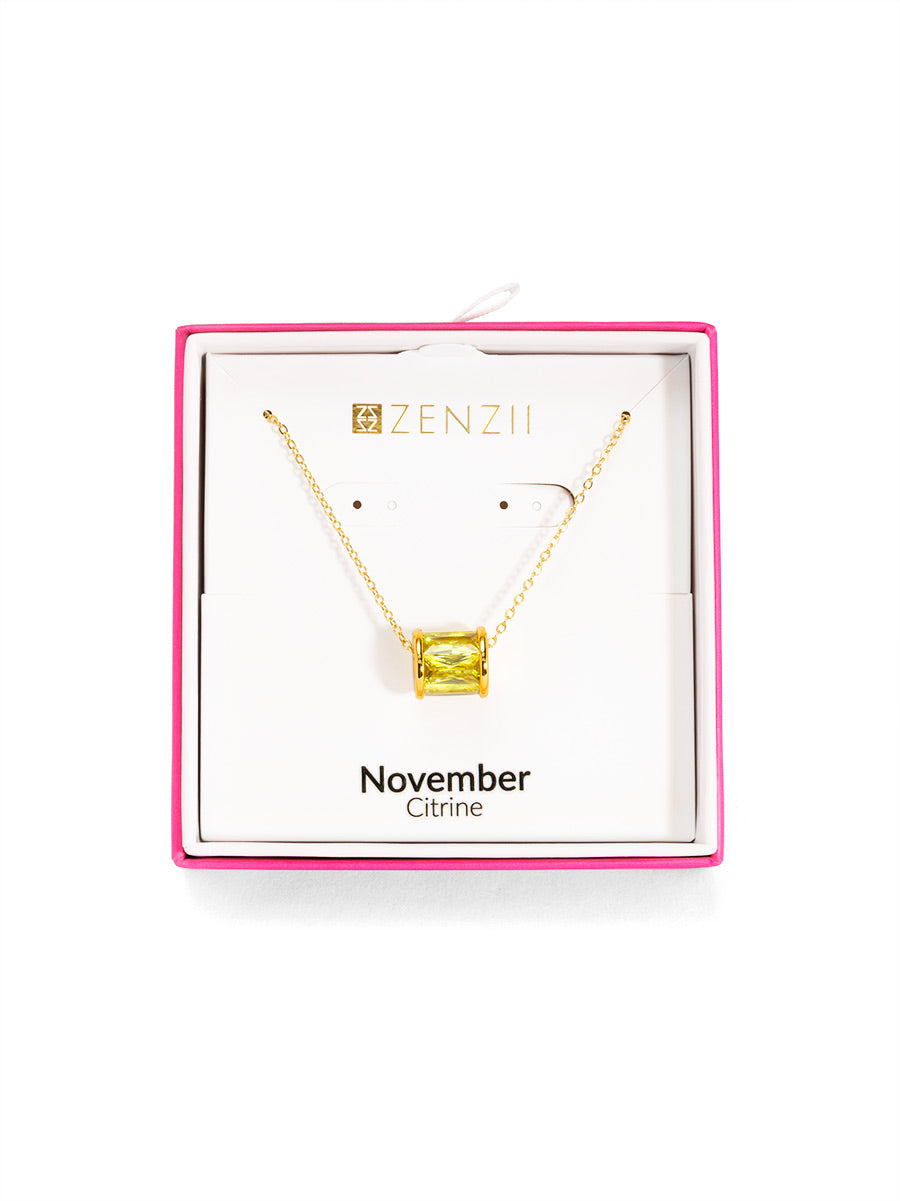 A delicate necklace featuring a faceted birthstone-inspired charm framed in polished gold.