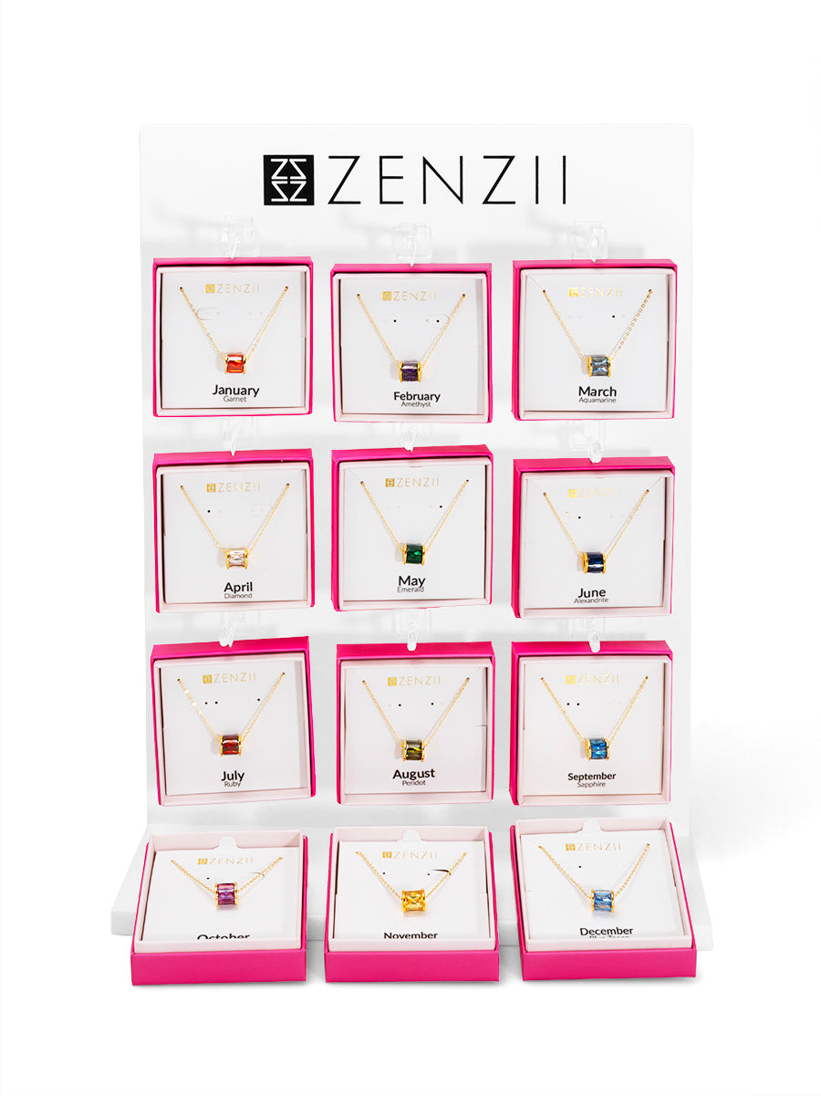 A2: set contains 24 pieces, you get 2 quantities of all 12 birthstone necklaces, No Display.