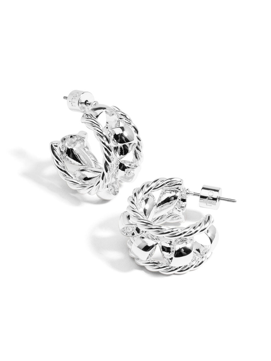 Small huggie earring plated in 18K gold, featuring ribbon and braid embellishments.