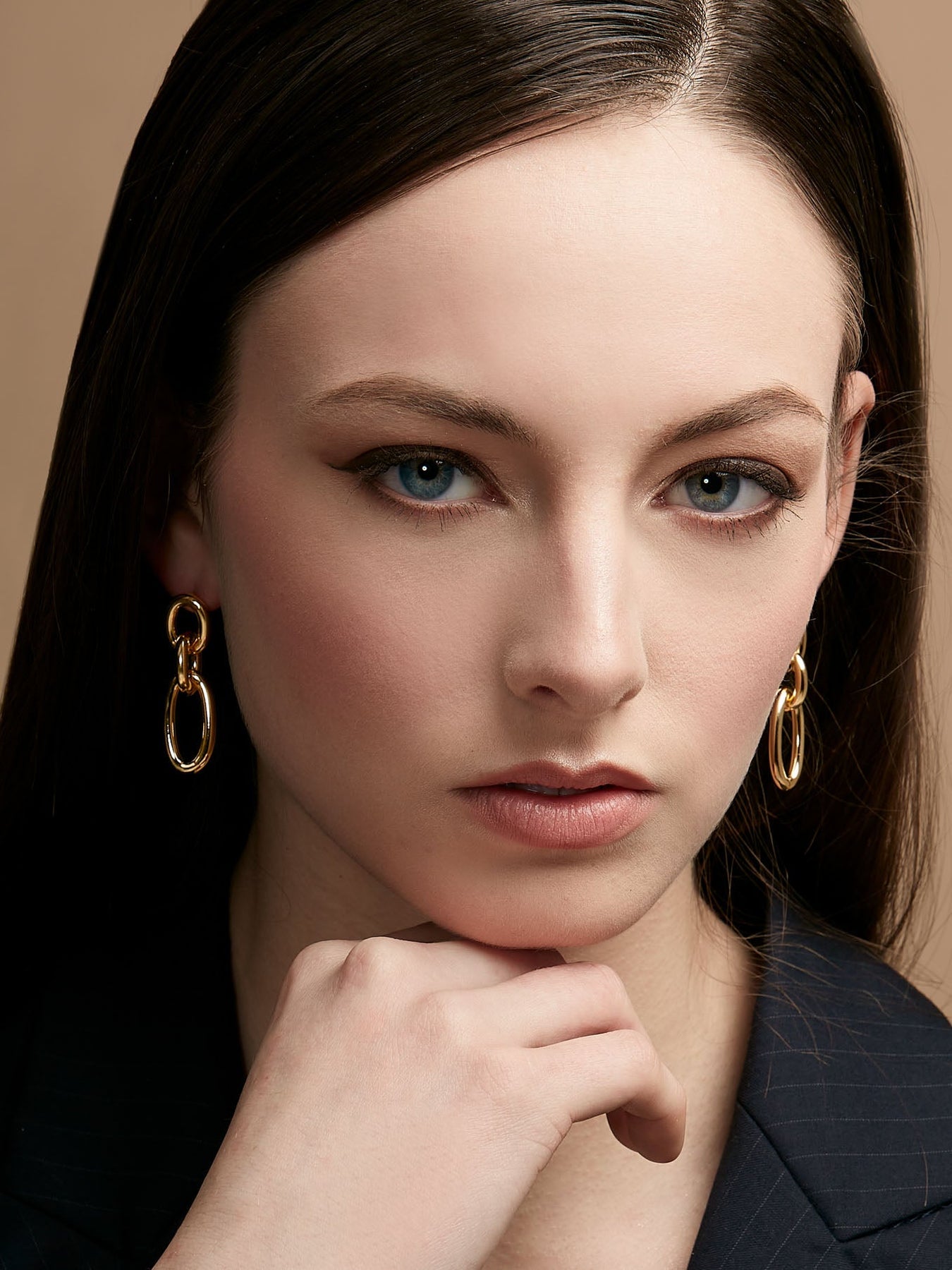 Drop earring plated in 18K gold with two link drops.