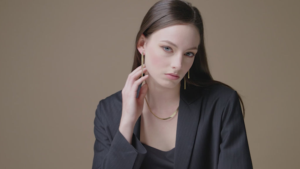 Brass based front and back double drop earring with metal-plated snake chain design.