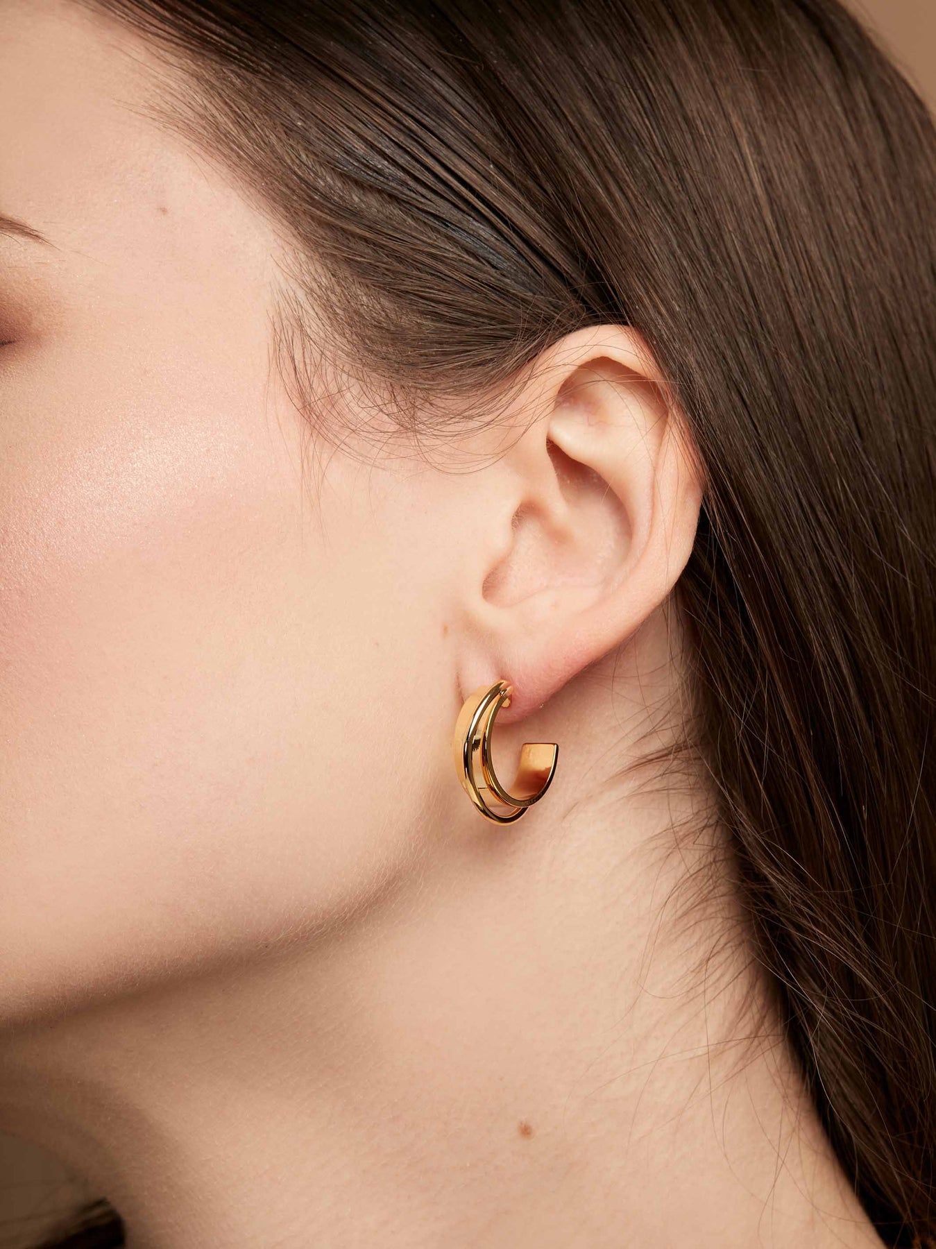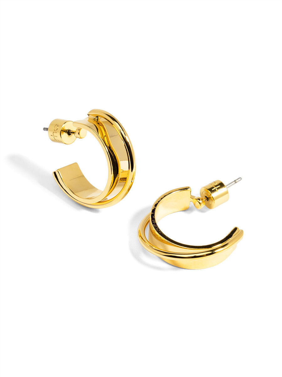 18K gold-plated huggie earring in a textured pattern.
